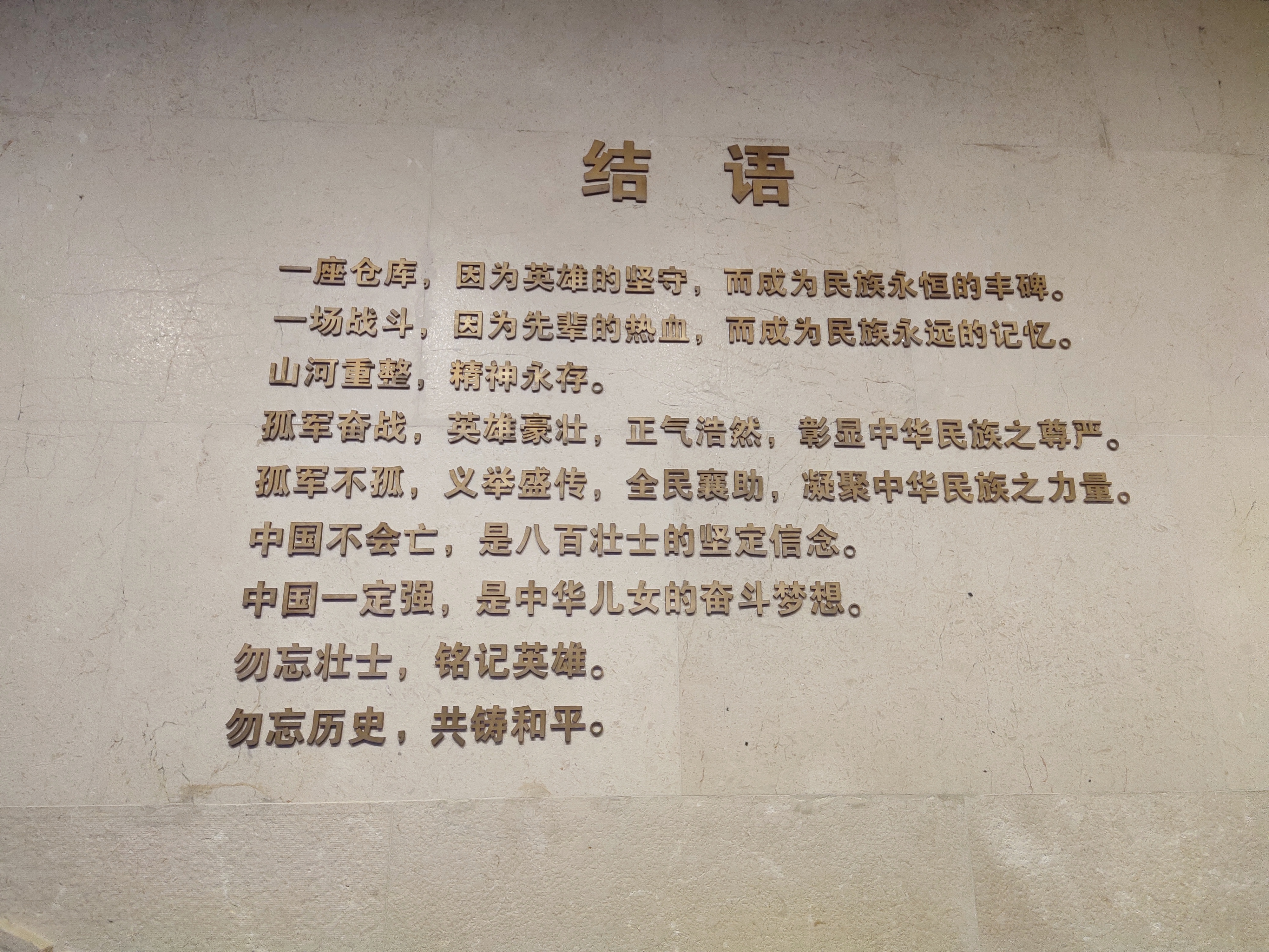 全体同志通过参观学习,加强了对党史和国史的了解,深刻体悟到新中国成立的艰辛与不易,正如展馆结语处所写:中国不会亡,是八百壮士的坚定信念;中国一定强,是中华儿女的奋斗梦想。勿忘壮士,铭记英雄;勿忘历史,共筑和平。“铭记历史,珍爱和平”,正如习总书记在抗战70周年纪念大会上指出的那样,时间会抹平历史的伤痕,但是我们不能忘记这段屈辱而又悲壮的历史,山河无恙,吾辈当自强!如今我们生活在一个和平幸福的国度,离不开战争时期勇于抗争、不怕牺牲的爱国英雄们,我们更要懂得珍惜和守护这一方国土,维护来之不易的和平。此次四行仓库的参观令同志们感受颇深,我们将以“四史”教育为契机,以史为鉴,从历史中汲取智慧启迪,将爱国情怀化为强大的学习工作动力,在日常工作中充分发挥党员的先锋模范作用,不断加强党性教育,提高党员责任感。