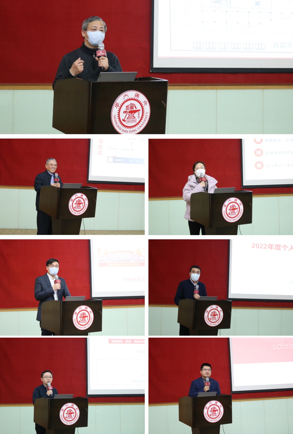 正职领导述职报告环节由陈露君主持。陈江平书记首先代表学院领导班子作工作述职。他从党建工作、人才培养、学科建设、师资队伍、国际合作、软实力建设等六个方面介绍了过去一年学院所取得的成绩。陈江平指出,2022年是特殊的一年,更是全院师生凝聚最强向心力、绘就最美同心圆的关键一年。他强调,新的一年,学院党政领导班子将进一步团结带领全院师生员工,在学院建设的各个重点领域下狠功夫、下巧功夫,实现更多“从0到1”的突破;期待与全院师生勠力同心,为建设中国特色世界一流生物医学工程学科而接续奋斗。陈江平随后做个人的述职述廉报告。