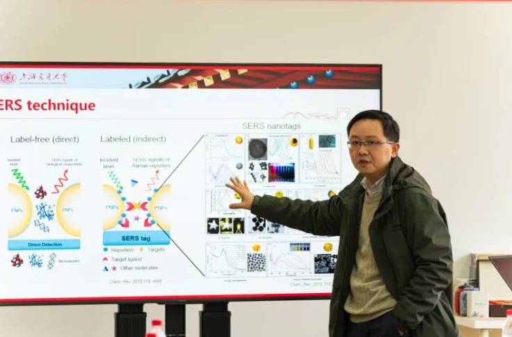 此后便开展学术研讨,交大生医工学院叶坚、林关宁、魏红江、顾波波、杨建龙、余辉、钱晓华分别做了“表面增强拉曼光谱的生物医学应用及在海洋中的潜在应用”、“生物信息学在疾病的分子诊断标志物评价中的应用”等结合自身研究方向的最新成果汇报,并简要介绍了其科研成果在海洋工程领域应用的可能性并表达了合作意向;海洋大学工程学院邢博闻、王美玲、叶海雄、王彪、李志坚也做了“信息化技术在渔业工程领域的应用研究”、“磁传感器及其生物医学应用”等最新的专业研究进展报告,以及与交大生医工学院可以继续交流合作的方向。