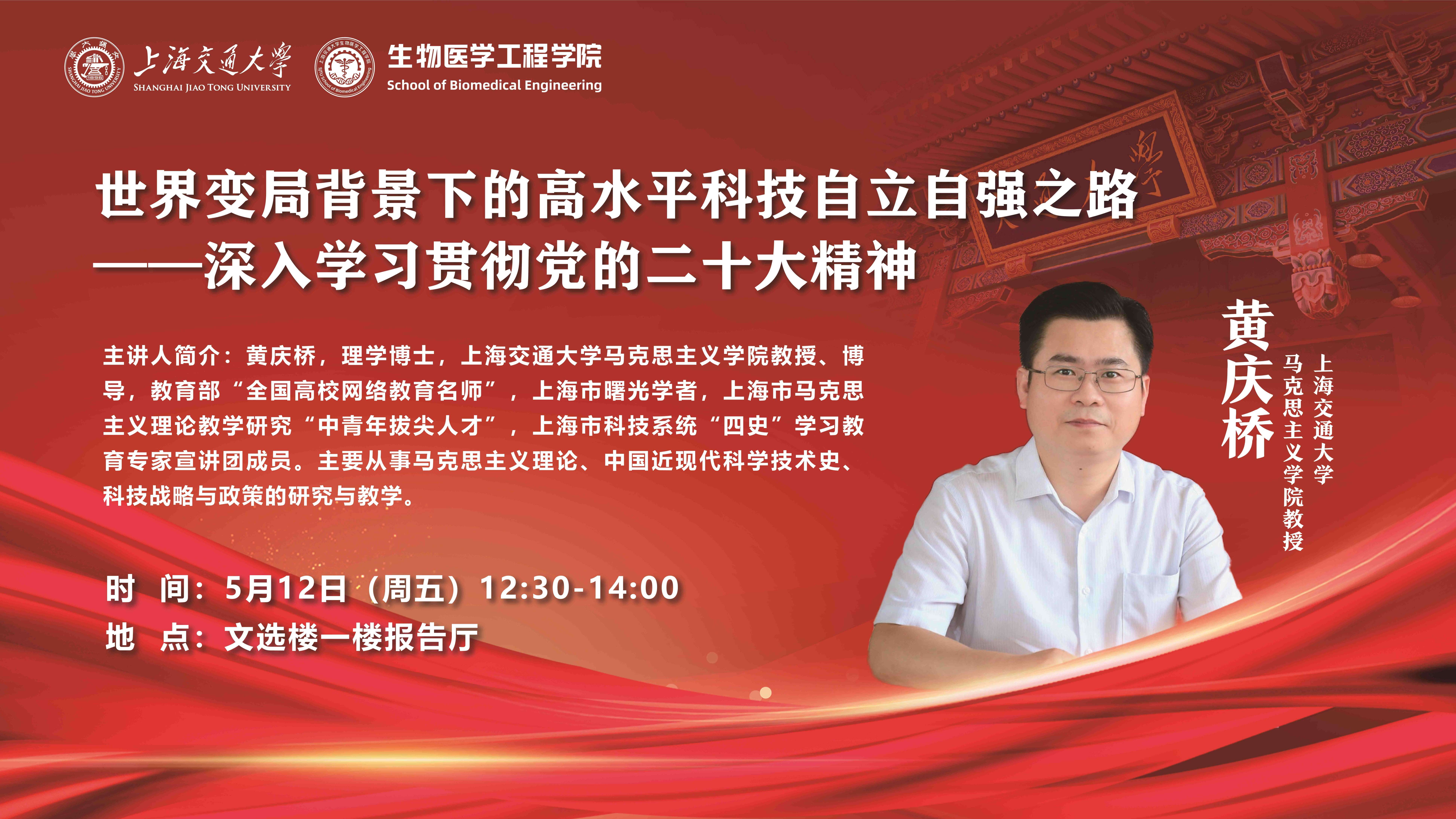 会上,陈江平书记总结,黄庆桥教授的党课是师生党员强化使命担当、汲取智慧力量、激发拼搏斗志的重要一课,在深化师生对党的二十大精神学习理解的同时,也促进了大家对于时代之需、人民之需、国家之需的思考。伟德体育官网将始终坚持“四个面向”,以服务健康中国战略需求为导向,集聚力量进行原创性引领性科研攻关,培养学科交叉领域创新型人才,为实现高水平科技自立自强贡献交大智慧、贡献生医工力量。