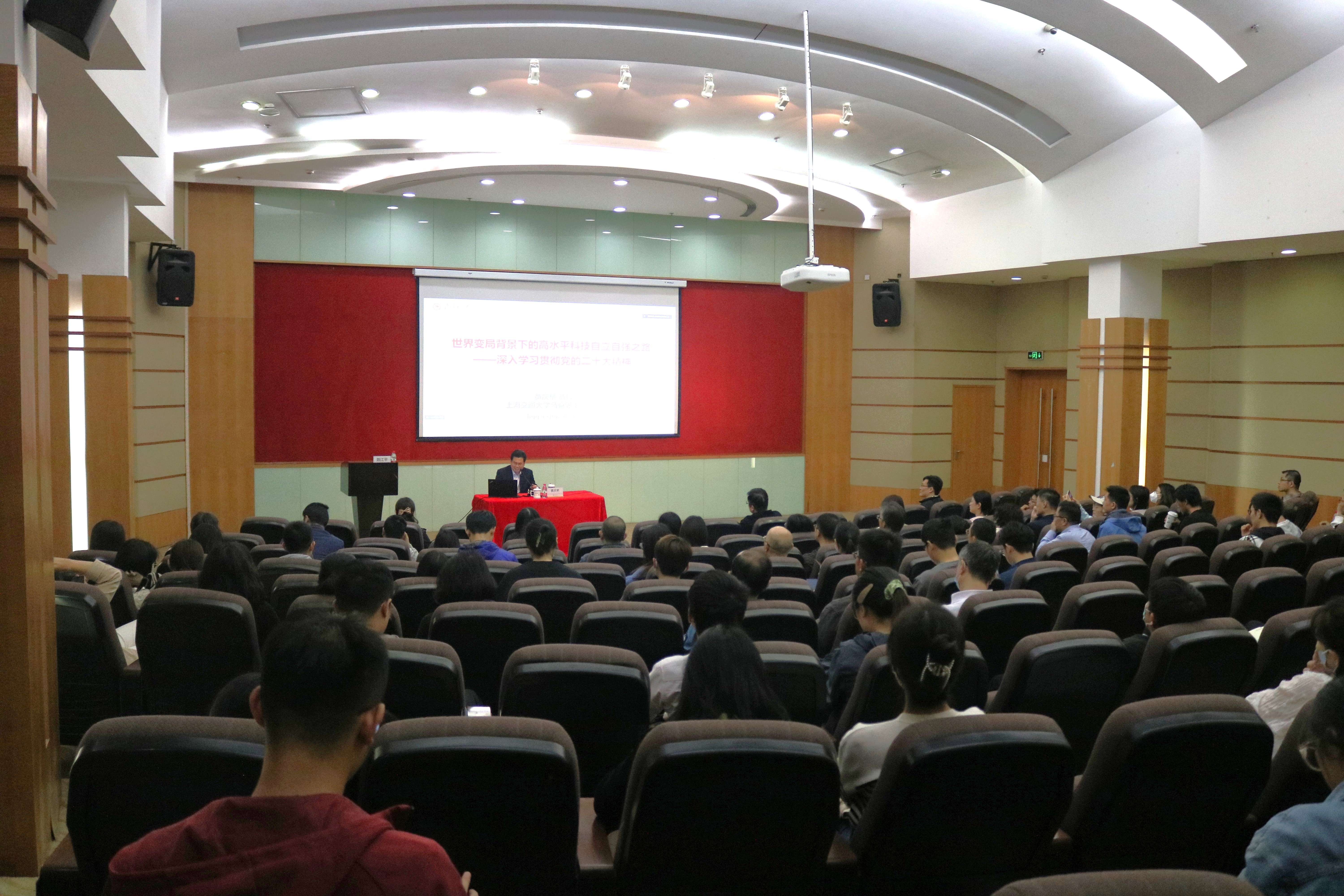 5月12日下午,伟德体育官网举办深入学习贯彻党的二十大精神专题党课,特邀马克思主义学院教授黄庆桥作题为“世界变局背景下的高水平科技自立自强之路”专题讲座,学院党委委员、师生党员、部分入党积极分子及退休教师代表参加学习,党委书记陈江平主持会议。