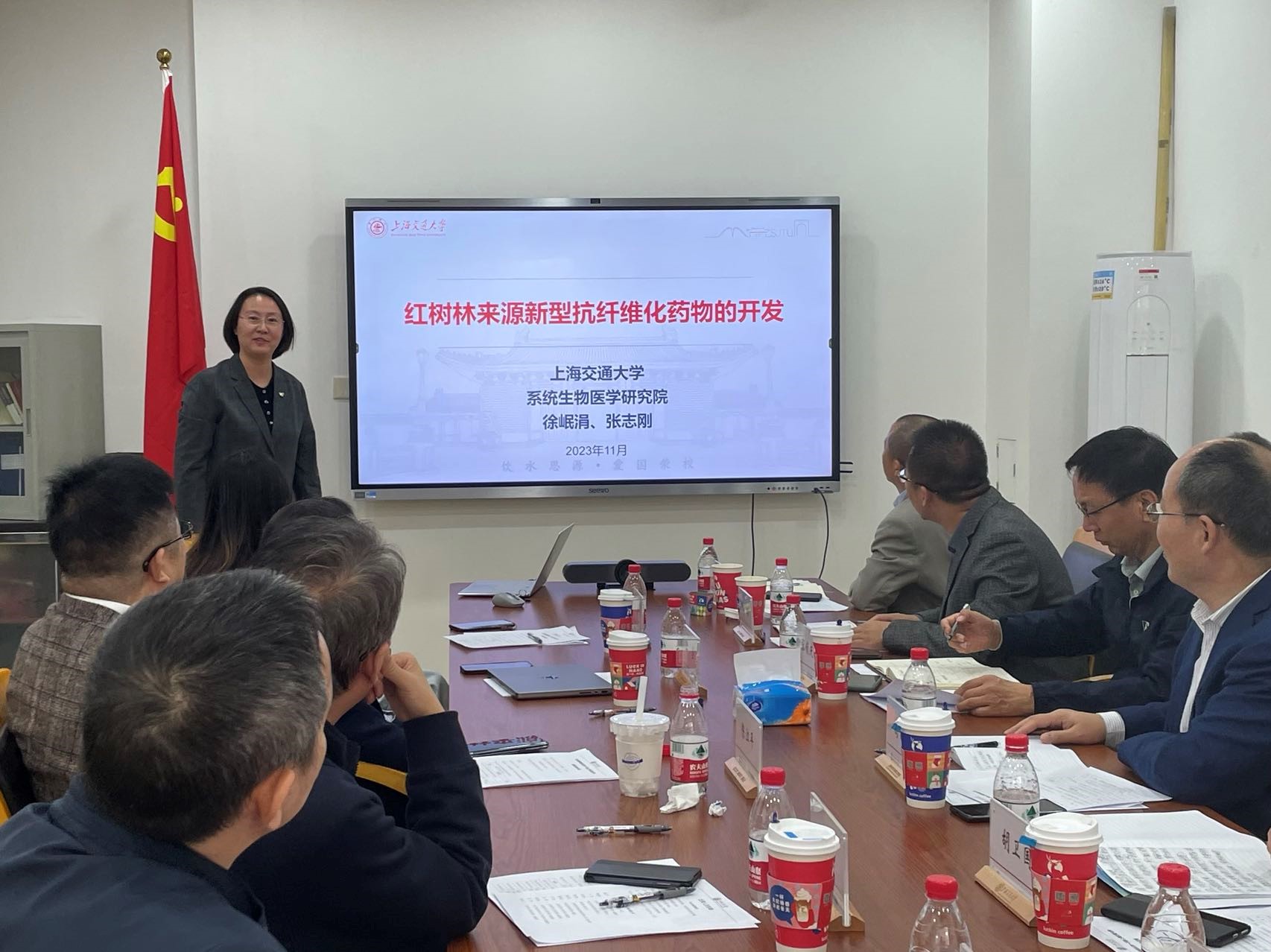 会上,生医工学院叶坚副院长、王飞虎副教授、顾波波副教授、沈峰副教授,电子信息与电气工程学院袁野副教授分别介绍了团队科研成果并着重展示了技术在药物研发、优化以及检测场景的应用;药学院副书记张宝红对细胞工程及抗体药物教育部工程研究中心的产学研合作开发项目进行了精彩介绍;系统生物医学研究院徐岷涓老师以红树林来源的新型抗纤维化药物开发为例介绍了活性天然产物在新药发现中的重要作用。
