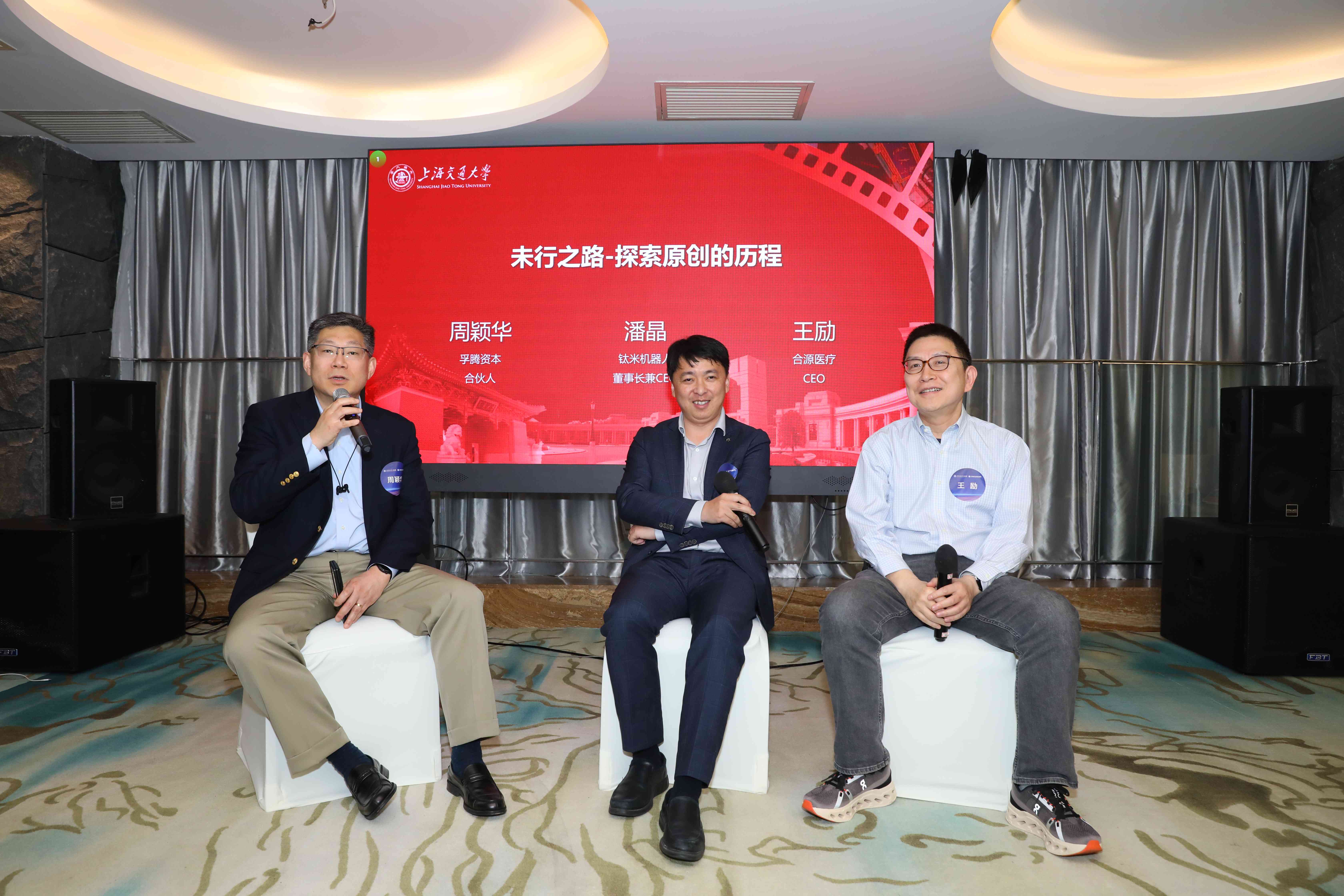 随后,主持人周颖华学长与上海钛米机器人股份有限公司董事长潘晶学长、合源医疗器械(上海)有限公司CEO王励学长围绕医疗器械领域的热点问题、人工智能领域展开了深入讨论。校友们纷纷发言,分享了自己的见解和经验,现场气氛热烈而融洽。
