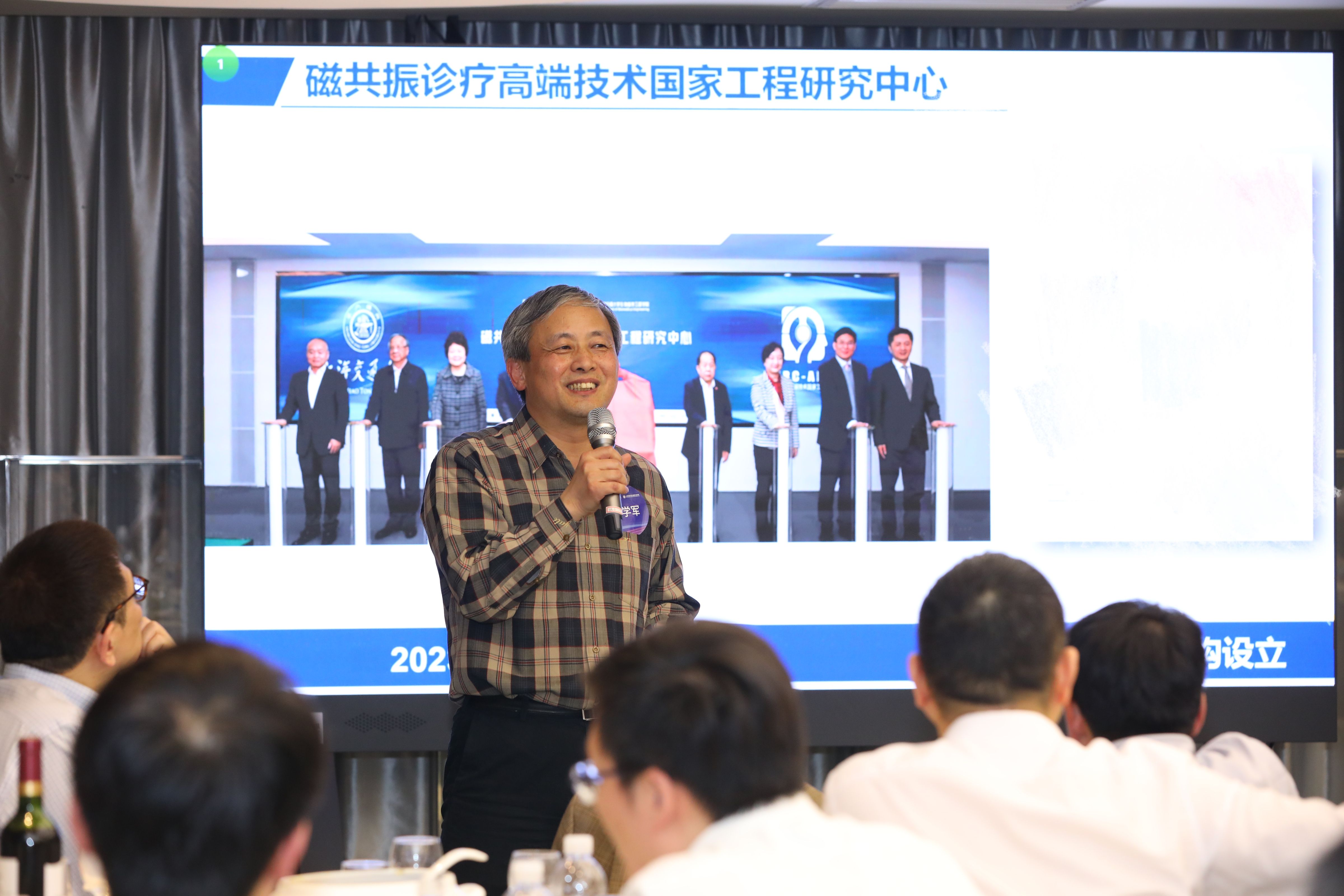 随后,金学军老师介绍了磁共振国家工程中心的相关进展、研究方向及未来发展规划,引起了校友们的浓厚兴趣,让校友们对中心的发展充满信心与期待。