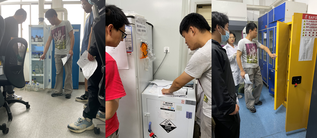 由学院安全员对化学类实验室进行专项检查,检查了试剂柜的使用合理性,试剂归属合理性,台账填写的规范性,通过这次检查,同学们不仅学到了实验室管理的知识和技能,还学会了如何自我管理、自我提升。他们会在今后的实验中更加注重细节和规范,不断提升自己的实验技能和安全意识。