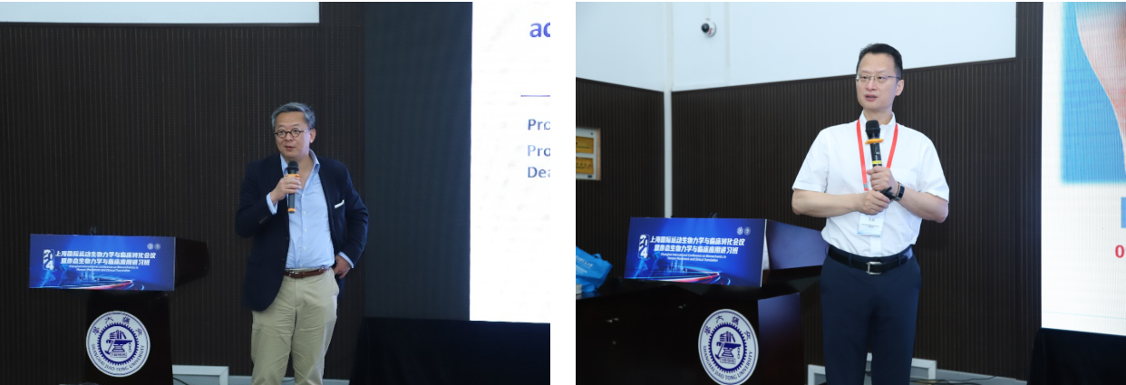 图6:英国朴茨茅斯大学Raymond Lee教授和上海交通大学医学院附属第六人民医院党委书记马昕教授在做主题报告