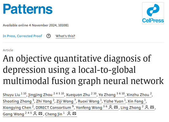 2024年11月4日,伟德体育官网金成团队在《Patterns》上发表了题为“An objective quantitative diagnosis of depression using a local-to-global multimodal fusion graph neural network”的研究论文。该研究使用局部-全局多模态融合图神经网络(LGMF-GNN)来应对抑郁症客观定量诊断的挑战。