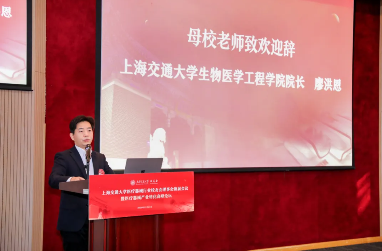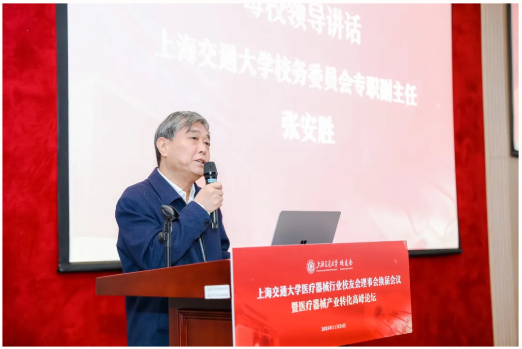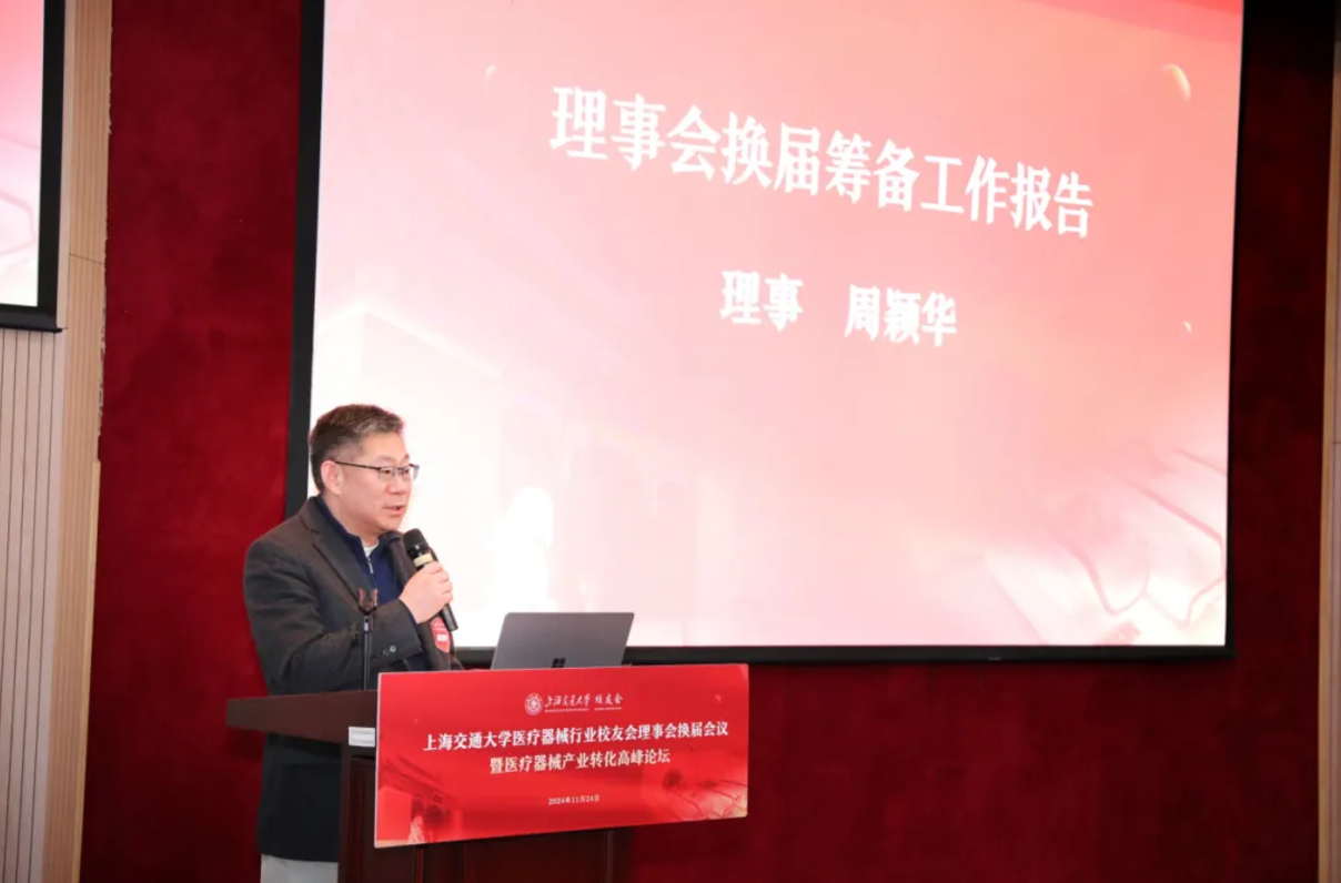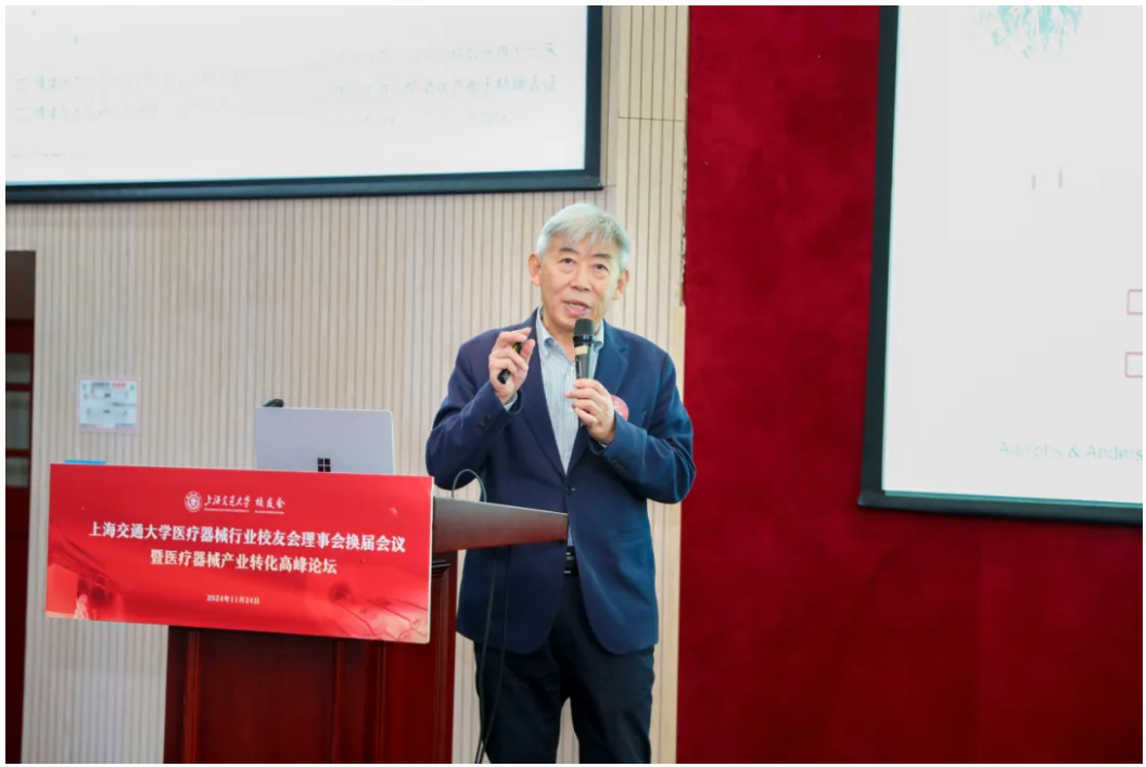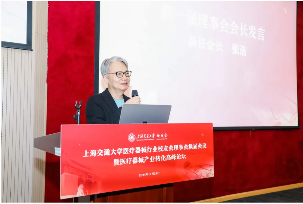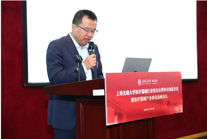 2024年11月24日,上海交通大学医疗器械行业校友会理事会换届大会暨医疗器械产业转化高峰论坛在徐汇校区新上院N100报告厅举办。上海交通大学校董、第三届医疗器械行业校友会名誉会长成明和,会长张浩,执行会长周颖华等百余位校友参加会议。